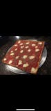 Stacked layers of pasta packed with meat and cheese, covered in red sauce. Pro tip: Go for the crispy edge pieces.
